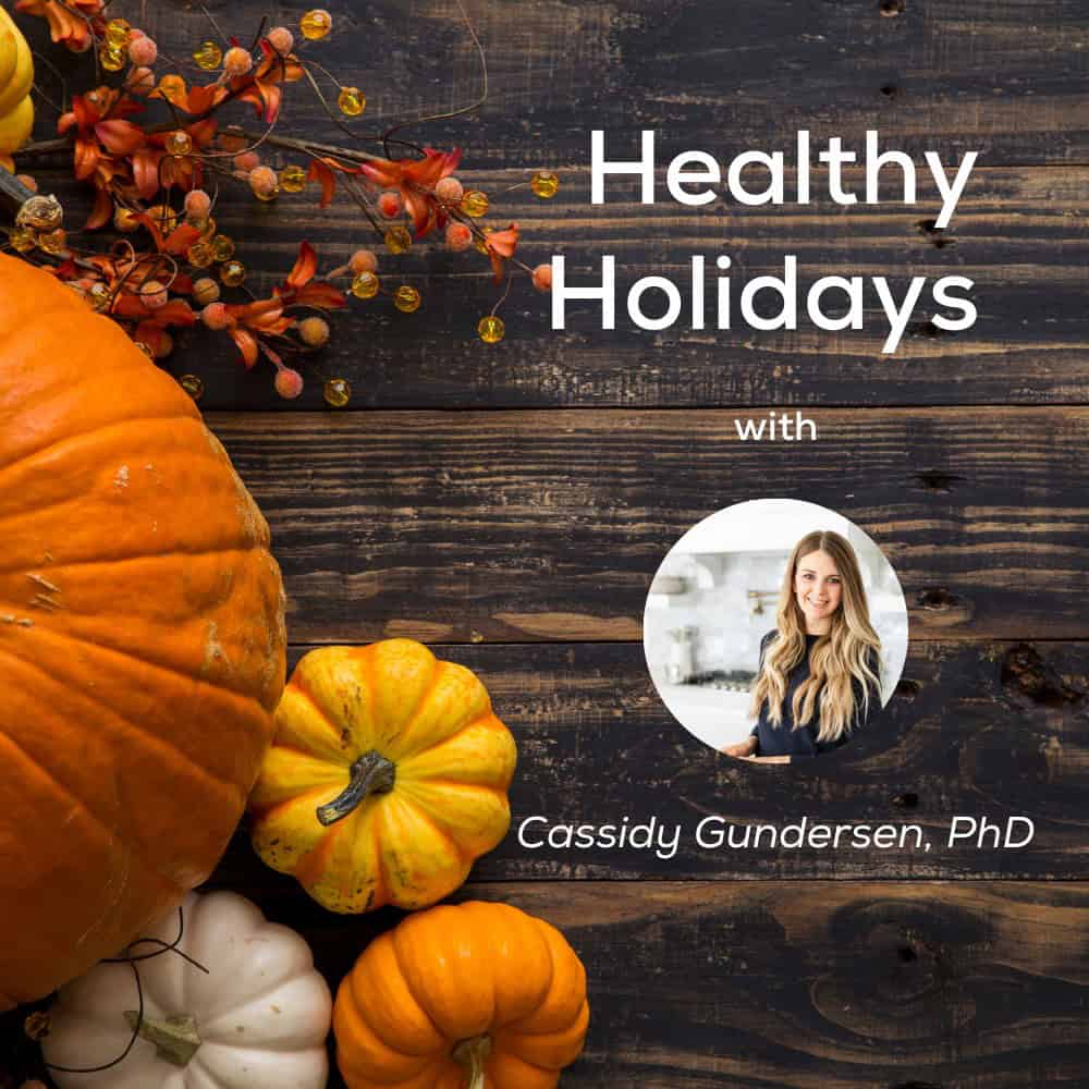 Healthy Holidays Class and Cookbook Was $49 Now $37 Sale Join Cassidy Gundersen, PhD as she presents one of her most sought after classes about how to eat healthy through the holiday season! Cassidy will share some of her vast knowledge and experience to help you stick with your health goals through the holiday season but still enjoy your food!What you can expect to get out of this class:Why you want to eat well during the holidaysHow you can reverse serious health problems with holiday foodsHow to avoid the negative side effects of holiday season eatingA Holiday Cookbook with delicious recipesQuestions and answersAnd much more! Quantity Enter an amount $ Add to Cart Reviews No Reviews Yet Leave A Review